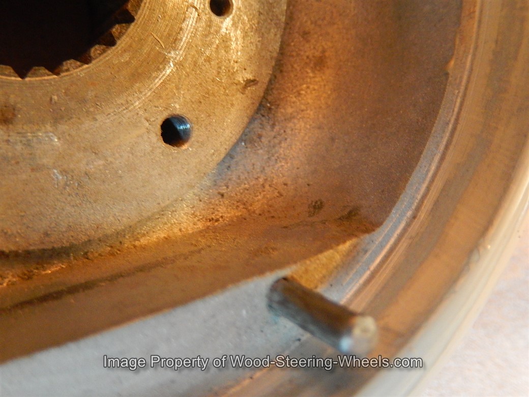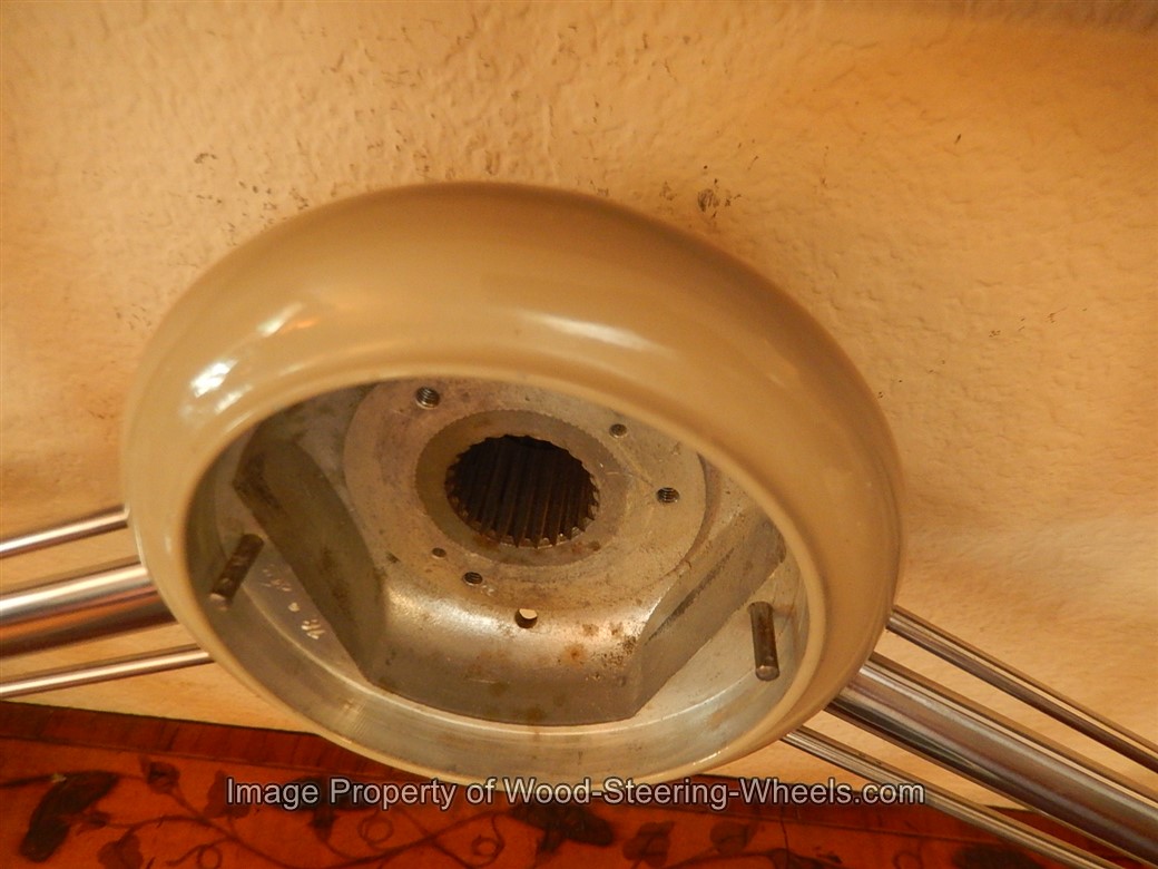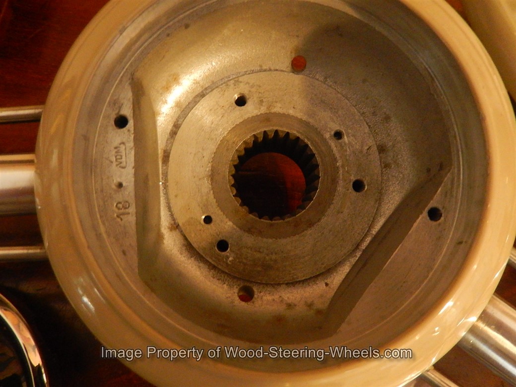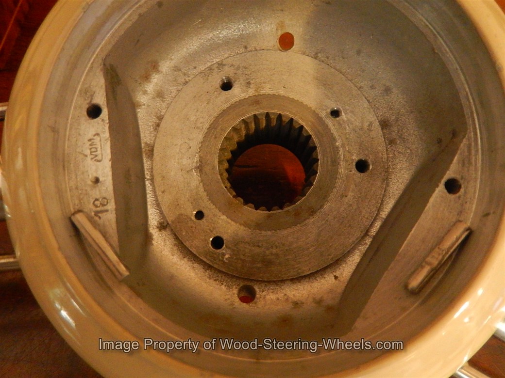 Inside the hub you can see that this steering wheel has its original PATINA and that it never had a locking nut placed on it.