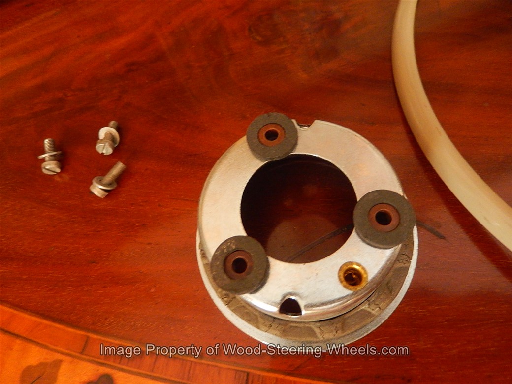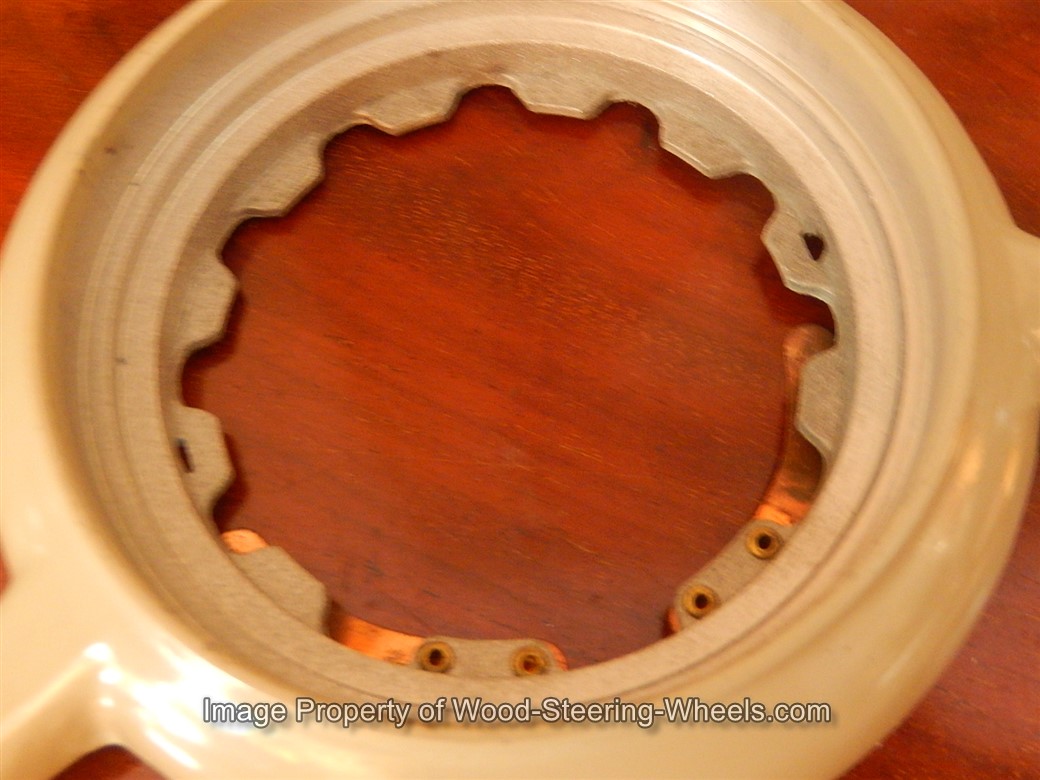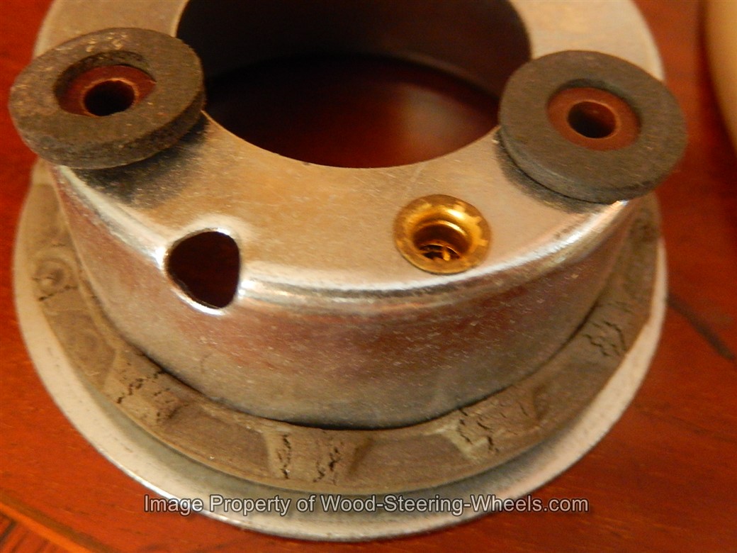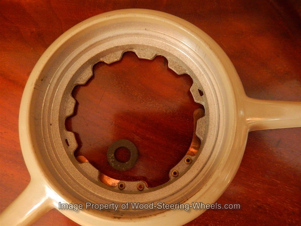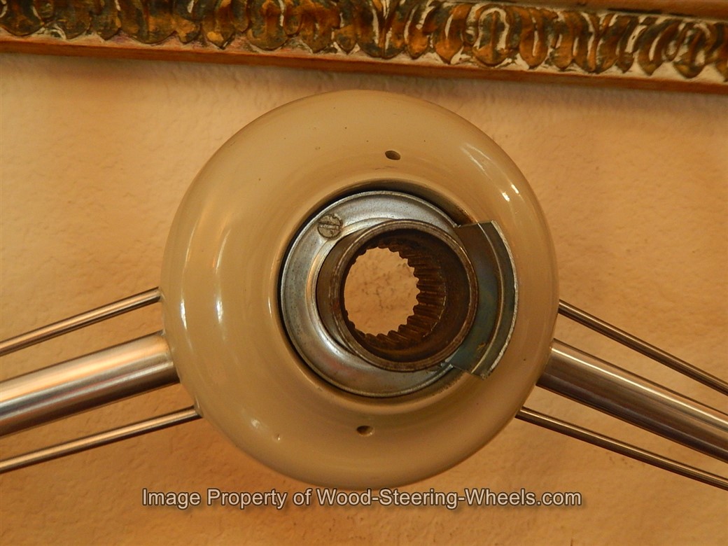 Inside the hub you can see that this steering wheel has its original PATINA and that it never had a locking nut placed on it.